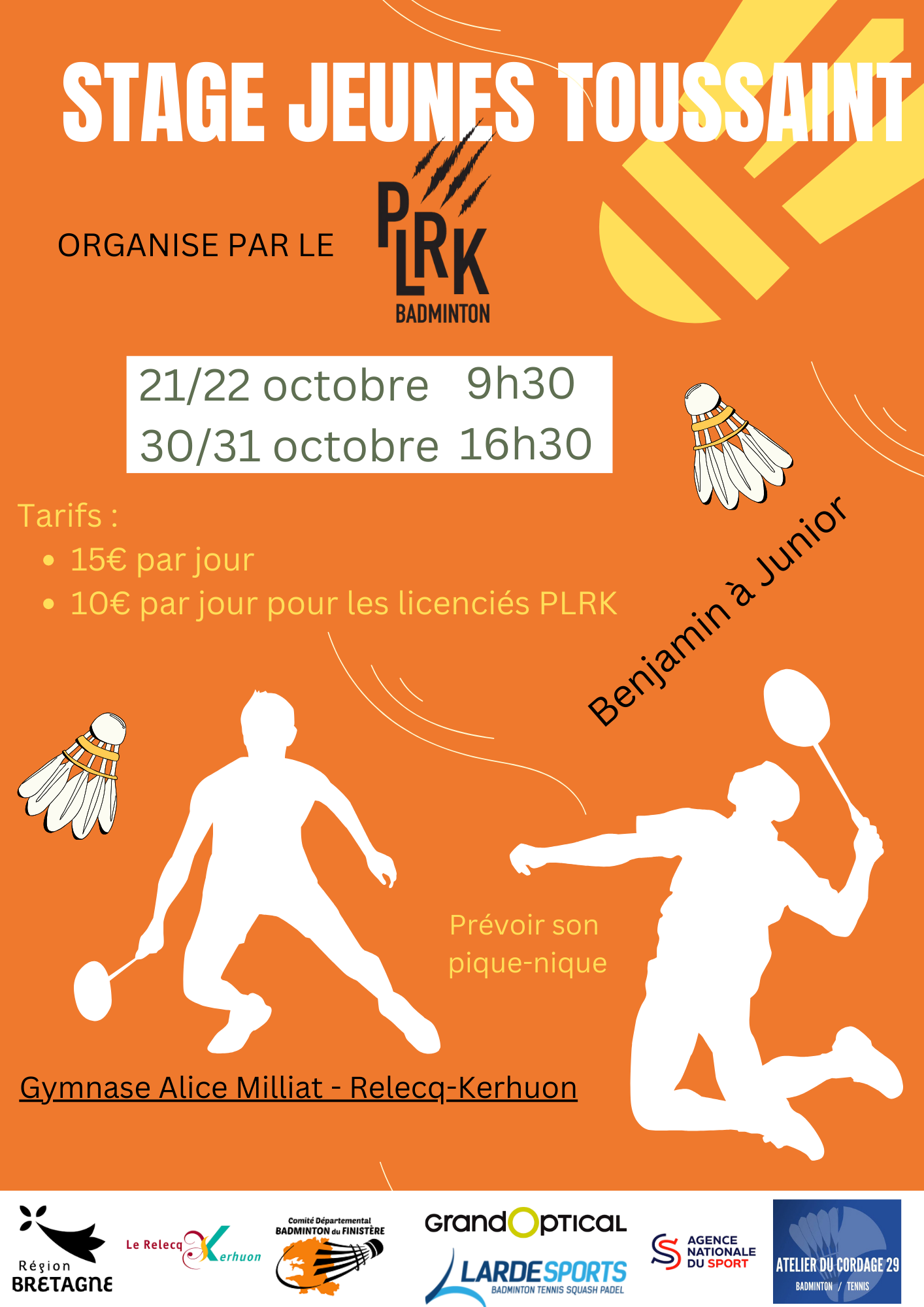 Le club organise des stages jeunes pendant les vacances de la Toussaint !